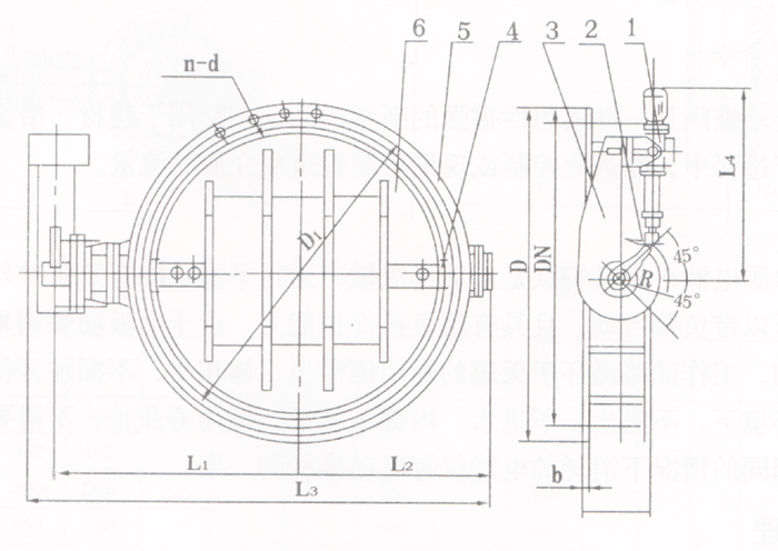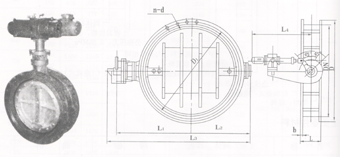 電液動蝶閥以電液推桿作動力源,通過雙向齒輪泵輪出壓力油,經油路集成塊的控制送至油缸,實現活塞桿往復運動,同時通過曲柄轉動閥軸、閥板作90°范圍旋轉,達到調節流量的目的。